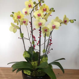 Price: $225.00 Novelty Phalaenopsis arrangement with kiwi and ceramic pot. Product Tags: Same-day Delivery